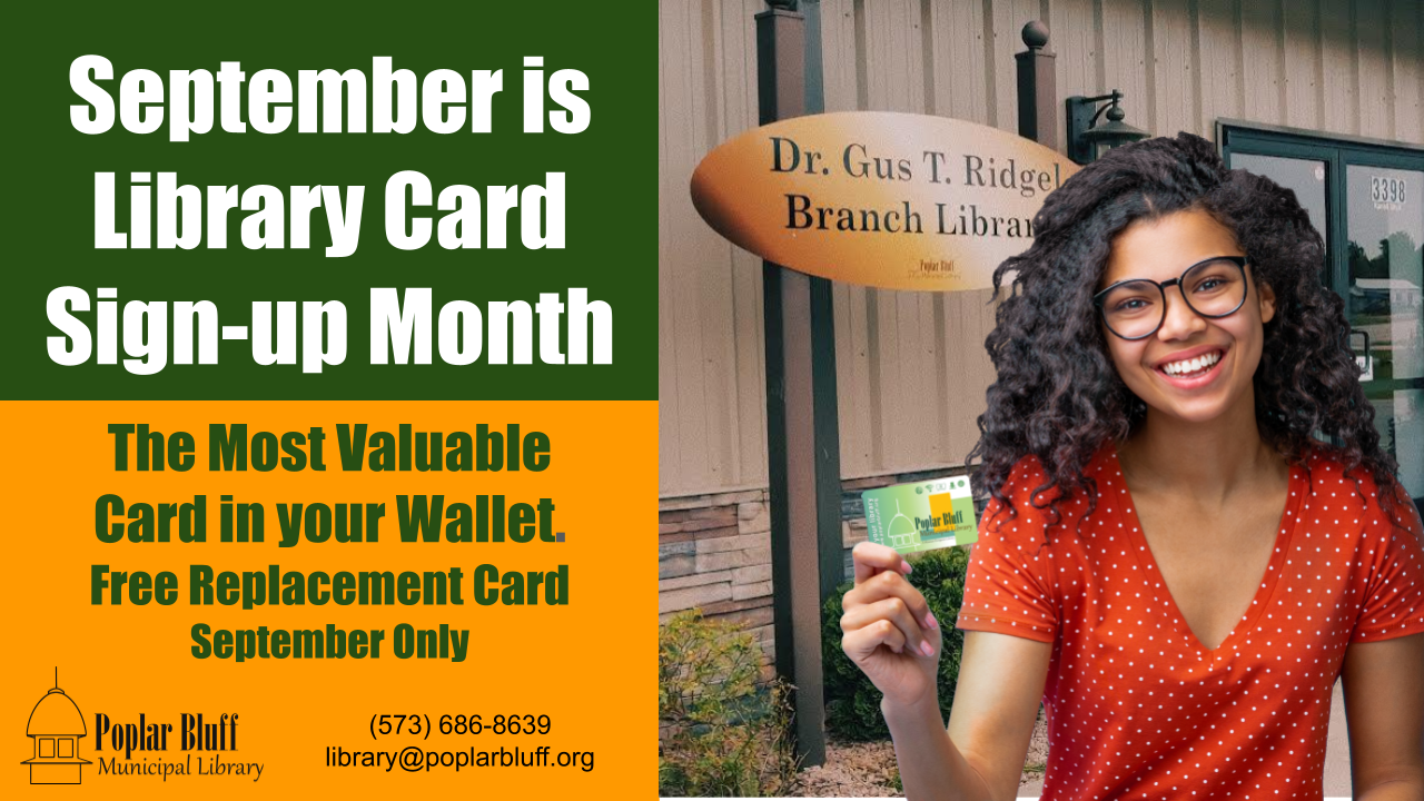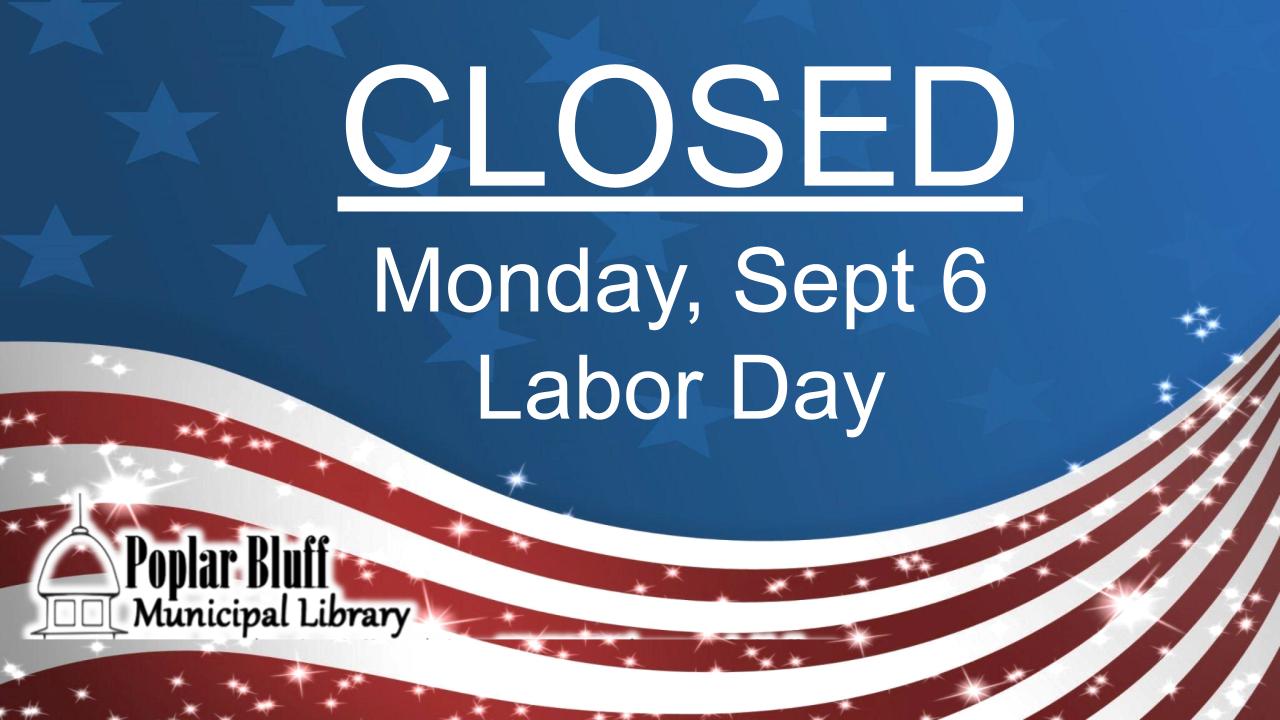 © by Poplar Bluff Municipal Library 318 N. Main Street, Poplar Bluff, MO | 3398 Kanell, Poplar Bluff, MO | (573) 686 - 8639 | library@poplarbluff.org Promoting Libraries to Make Our Communities Stronger.